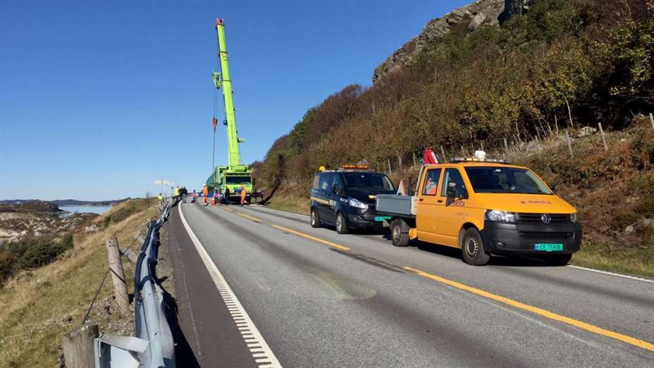 Ett kjørefelt i retning Aksdal ble da sperret ved 10.20-tiden og politiet rykket ut til stedet for å dirigere trafikken manuelt.