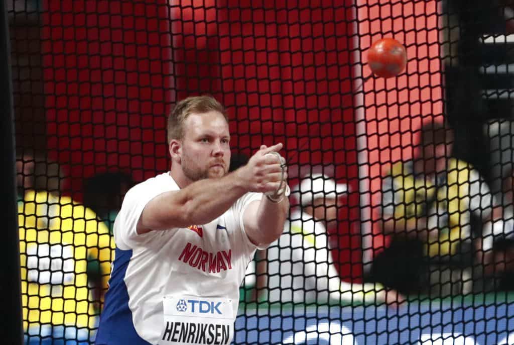 Henriksen har tidligere i år kastet 78,25 meter, som også er personlig og norsk rekord. Han fikk opp kastet i juni i Tyskland.