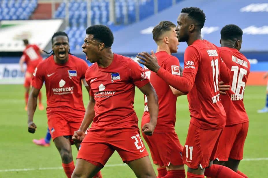 Allerede nedrykksklare Schalke tok ledelsen ved Amine Harit seks minutter ut i 1. omgang, men bare 12 minutter senere utlignet Hertha på en heading av Dedryck Boyata. Jessic Ngankam ble matchvinner med 2-1-scoringen for Hertha Berlin etter 74 minutters spill. Han fintet bort et par motspillere og scoret med et velrettet skudd.