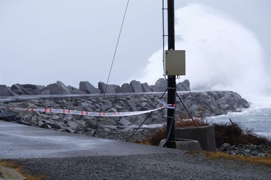 Politiet har nå satt opp sperrebånd ved moloen på Ferkingstad for å hindre at folk utfordrer skjebnene ved å bevege seg ut på moloen i ekstremværet.