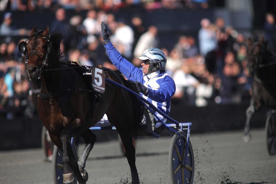 Frode Hamre kjørte hesten Stoletheshow inn til seier i travløpet Oslo Grand Prix søndag. Førstepremien var på 1,2 millioner kroner.