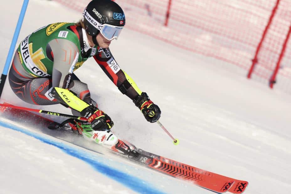 Ragnhild Mowinckel har fortsatt en del å jobbe med i storslalåm. Etter en uke med bare fartskjøring ble overgangen til en mer teknisk øvelse stor. Hun tapte mye fra start og var i mål 2,34 bak Shiffrin. Det holdt til 12.-plass etter første omgang.