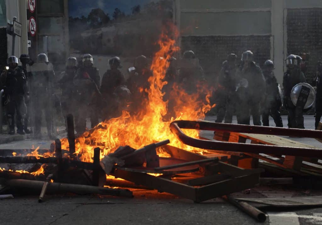Verre var det natt til søndag da det kom til kraftige sammenstøt mellom demonstranter som kastet brannbomber og satte fyr på søppel i gatene, og opprørspoliti som tok i bruk tåregass og gummikuler for å drive dem tilbake.