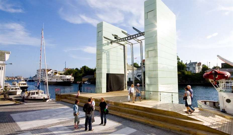Politiet kom til stedet før mannen hoppet. Da var han i ferd med å klatre opp i scene-konstruksjonen. Det var da han kom på toppen at han kledde seg naken og hoppet i sundet.