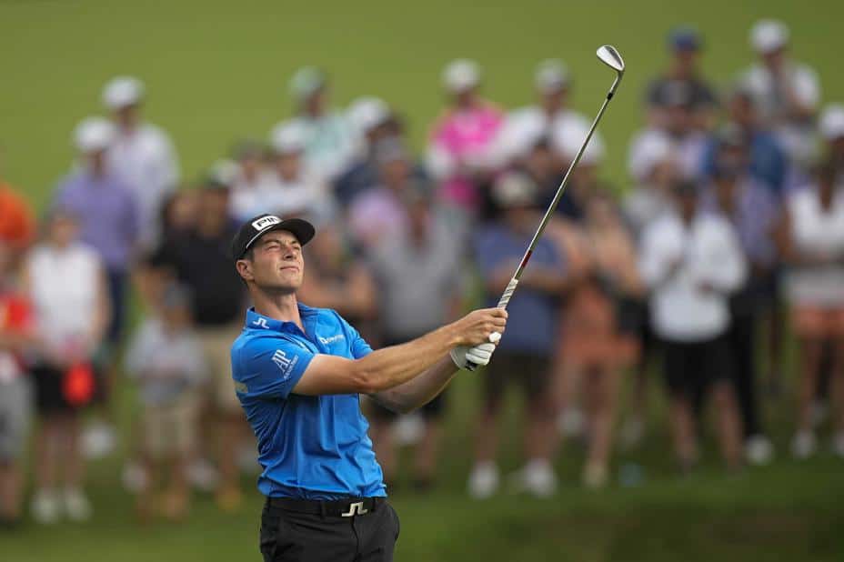 Det gir ham foreløpig delt 23.-plass, ni slag bak Will Zalatoris og åtte bak chilenske Mito Pereira, som leverte en forrykende 64-runde fredag. Ellers er det mange som sliter med å holde seg på par, for ikke å snakke om under.
