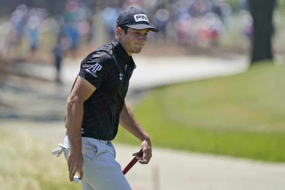 Etter en sterk førstedag av PGA Championship, slet Viktor Hovland mer på dag to. Han er fem slag bak lederduoen etter å ha gått tre over par fredag.