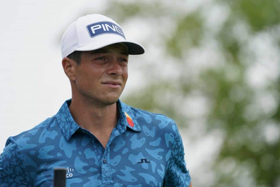 Den tidligere skolekameraten til Hovland, Matthew Wolff, ledet etter 2. runde, men han har sprukket på runde tre og er på elleve slag under par totalt.