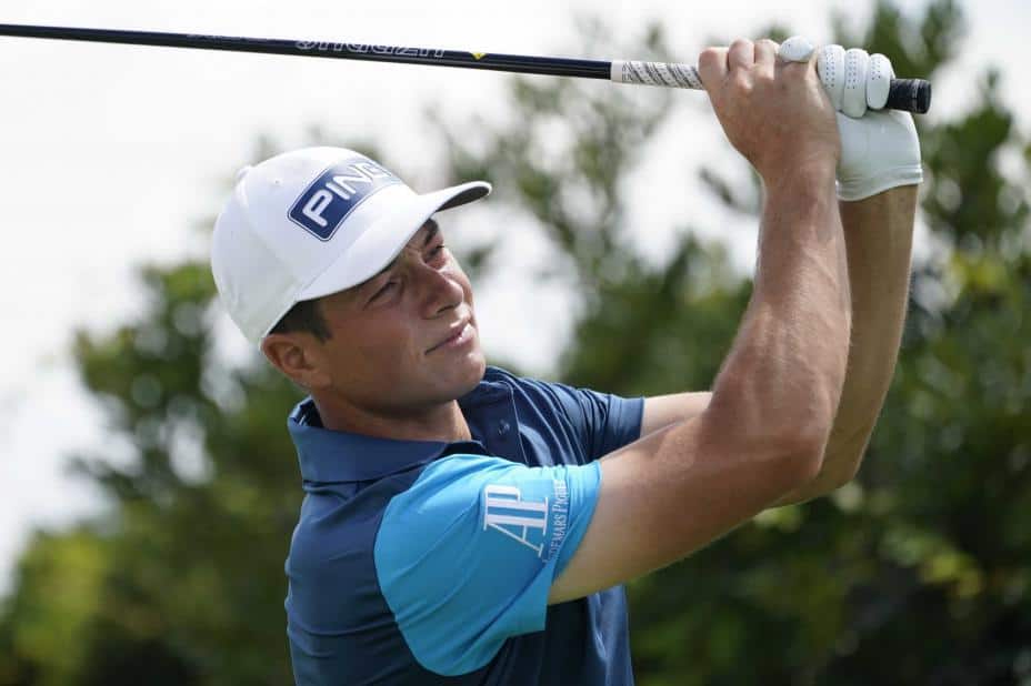 Viktor Hovland startet med en bogey i PGA-turneringen i Las Vegas søndag, men har siden løftet spillet med tre birdier og er på foreløpig 22.-plass halvveis.