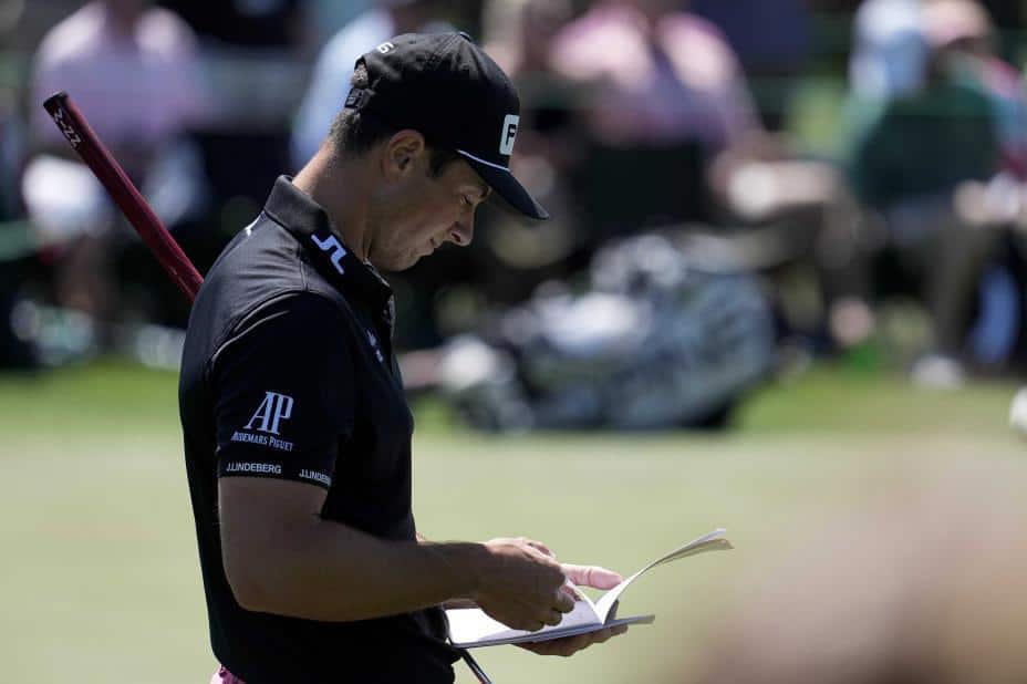 Viktor Hovland henger litt etter de beste i US Masters. Golfesset var svært nær å sette et utslag rett i koppen på åpningsdagen av prestisjeturneringen.