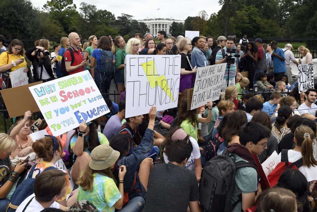 Unge demonstranter under en protest hvor også den svenske aktivisten Greta Thunberg deltok foran Det hvite hus i Washington forrige fredag. Foto: Susan Walsh / AP / NTB scanpix