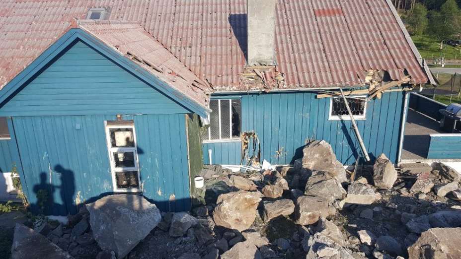 – Folkene i huset var evakuert før sprengningen fant sted. Huset fikk skader på tak, vegger og knuste vinder, sier politiets operasjonsleder André Skram Hansen til Haugesunds Avis.
