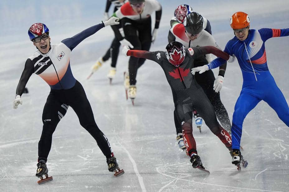 Steven Dubois fra Canada knep sølvet etter fotofinish mot ROC-løper Semen Elistratov. Dubios falt i semifinalen, men fikk finaleplass fordi nederlenderen Sjinkie Knegt forårsaket fallet.