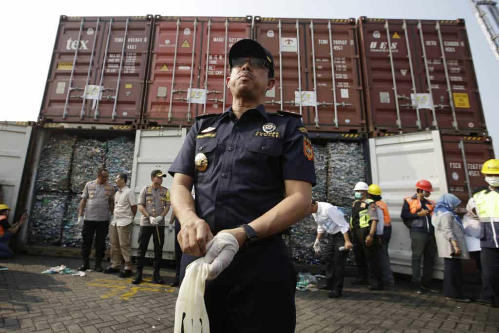 Indonesiske myndigheter har tatt beslag i over 2.000 konteinere med søppel fra vestlige land siden juli og har alt sendt 331 av dem tilbake fordi de hadde miljøskadelig innehold. Foto: AP / NTB scanpix