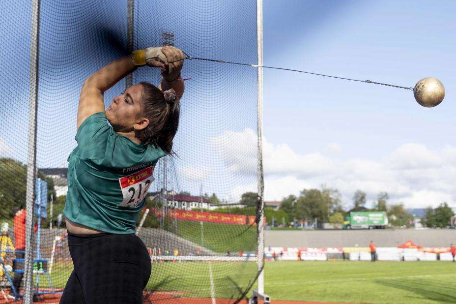 Sport: Bergenseren hadde 64,81 meter som bestenotering etter tre forsøk i Eugene i Oregon. Hun åpnet med 64,57 og fikk et kast på 66,22 strøket.