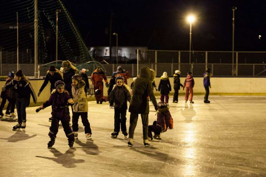 Det er Karmøy hage og vedlikehold som sammen med foreldre i området har sørget for is på banene. Det er tre år siden det har vært is på banen.