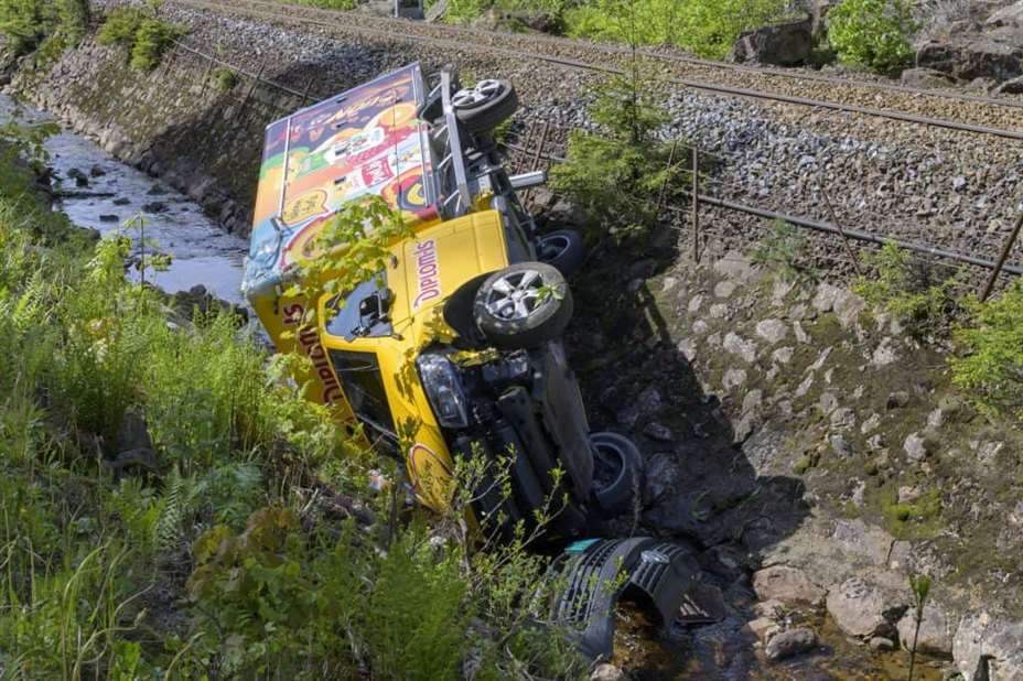 Ulykker og naturkatastrofer: Det er så langt ukjent hvordan bilen havnet på siden i bekken, som for øyeblikket er svært grunn.
