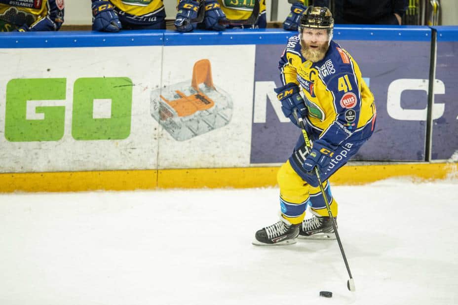 Storhamar-kaptein Patrick Thoresen slo Vålerenga i den andre kvartfinalen i NM-sluttspillet. Foto: Annika Byrde / NTB