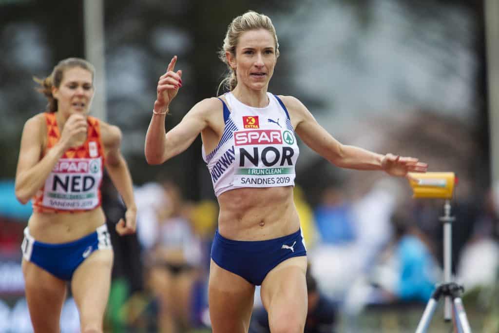 Karoline Bjerkeli Grøvdal var raskest på 3000 meteren på tiden 9.45,20. Tidligere lørdag løp Amalie Iuel raskest i finalen på 400 meter hekk-finalen. Hun vant på tiden 55,80.