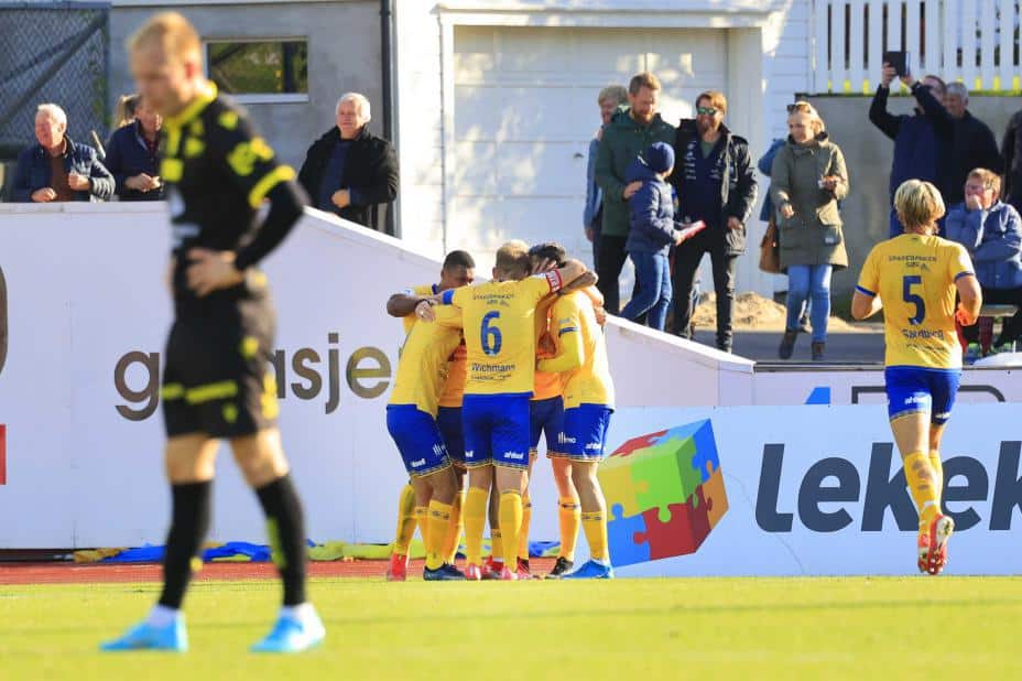 Det ble mye Jerv-jubel i sørlandsderbyet mot Start lørdag. Foto: Tor Erik Schrøder / NTB