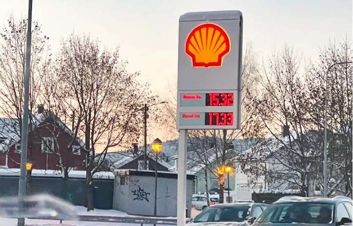 Shell kunne skilte med 15,32 kroner literen for bensin og 17,33 kroner literen for diesel torsdag 15. desember. Foto: Lise Åserud / NTB