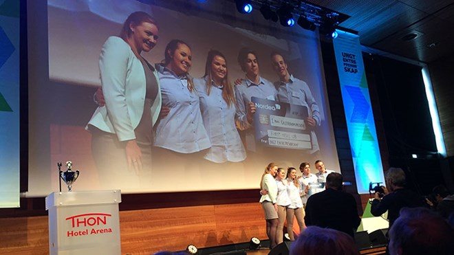 NM arrangeres årlig av Ungt Entreprenørskap. Prisen ble delt ut av politisk rådgiver i Landbruks- og matdepartementet, Julia Brännström Nordtug.