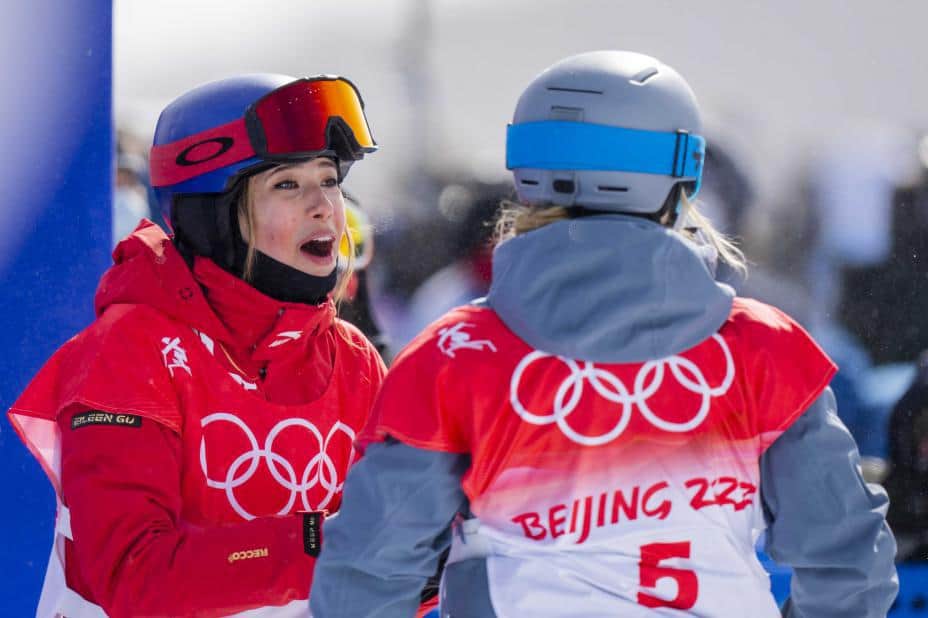 Den største stjernen av dem alle på slopestylearenaen i Genting Snow Park var Eileen Gu. Hun er født i USA, men konkurrerer for Kina. En horde av journalister fulgte etter henne i intervjusonen. Hun tok sølvet etter å ha sikret seg gull i Big Air tidligere i mesterskapet.