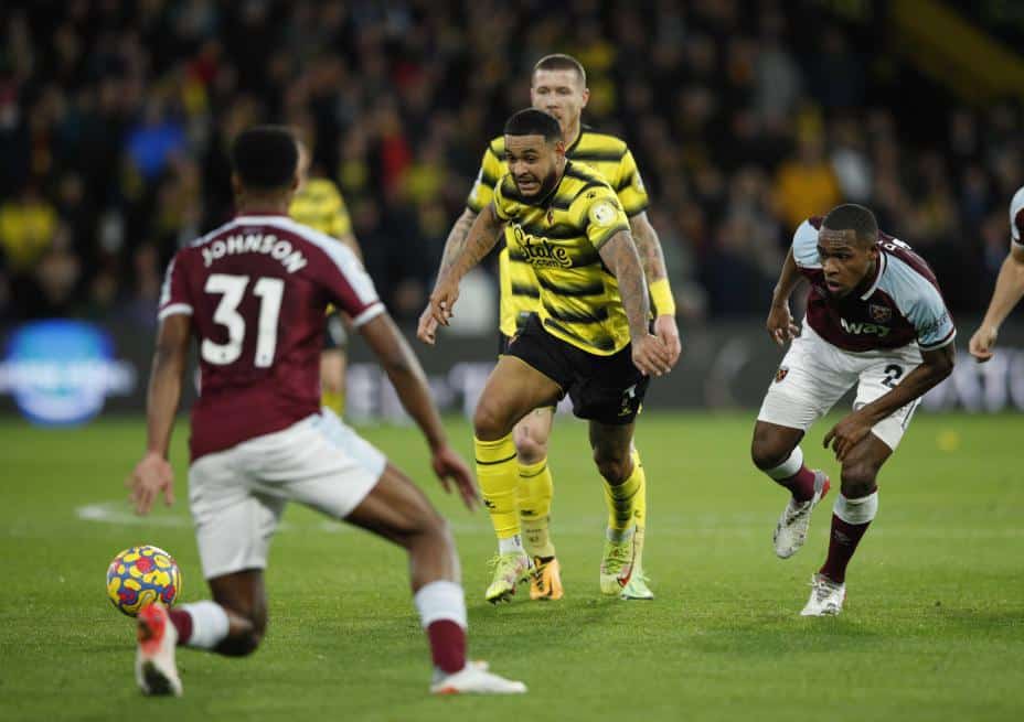 West Ham henger med i tetsjiktet og vendte kampen før pause. Tomás Soucek utlignet i det 27. minutt framspilt av Jarrod Bowen, og to minutter senere scoret Saïd Benrahma ledermålet på en kontring etter et balltap av Francisco Sierralta. Michail Antonio, tilbake i laget etter koronasmitte, sto for assist.