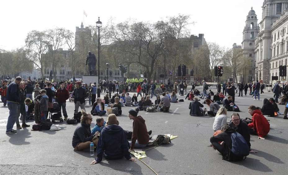 I London sperret mer enn 1.000 demonstranter Waterloo Bridge og la ut trær og potteplanter for å hindre trafikken. Demonstrantene knuste også vinduer på London-kontoret til oljegiganten Shell, og skrev «Shell kills», samt «skam» og «løgn» på utsiden av bygget.
