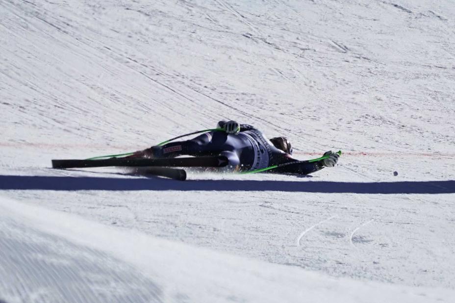 Den svenske alpinisten Felix Monsén pådro seg en kneskade da han falt under utfortreningen i Val Gardena torsdag. Senen som holder kneskålen på plass er røket.