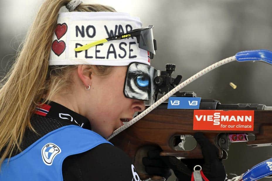 Ingrid Landmark Tandrevold hadde én bom på sine to skytinger og gikk i mål til annenplass, men ble senere flyttet nedover på resultatlista og er på en foreløpig femteplass.