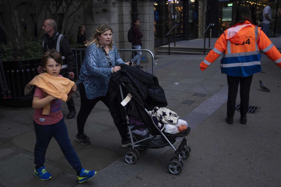 Folk kjapper seg for å stille seg i køen til Westminster Hall, der dronning Elizabeth siden onsdag har ligget på paradeseng, før den stenger. Søndag kveld ble køen stengt da makskapasiteten ble nådd. Foto: Nariman El-Mofty / AP / NTB