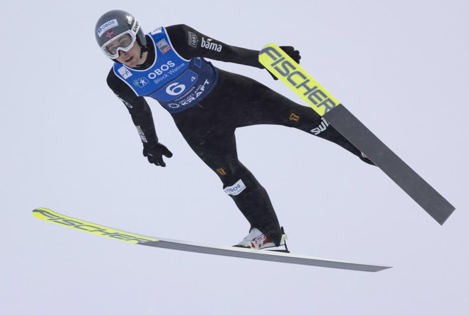 Sport: Riiber knallet til med 143 meter og går ut med en solid fordel i langrennsdelen. Forrige helg vant han to av tre renn.