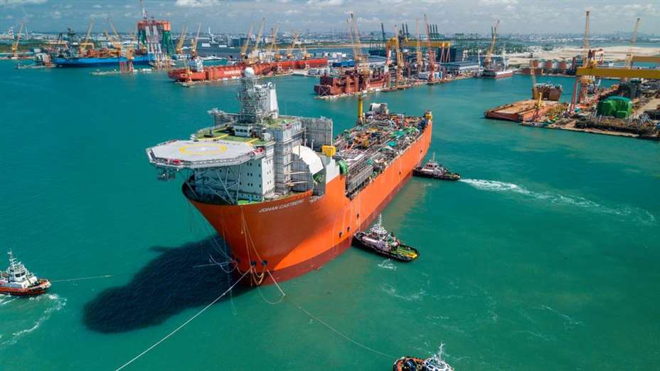 Johan Castberg-skroget var ute av dokken på verftet i Singapore 5. januar. FOTO: Blue Mango / Equinor