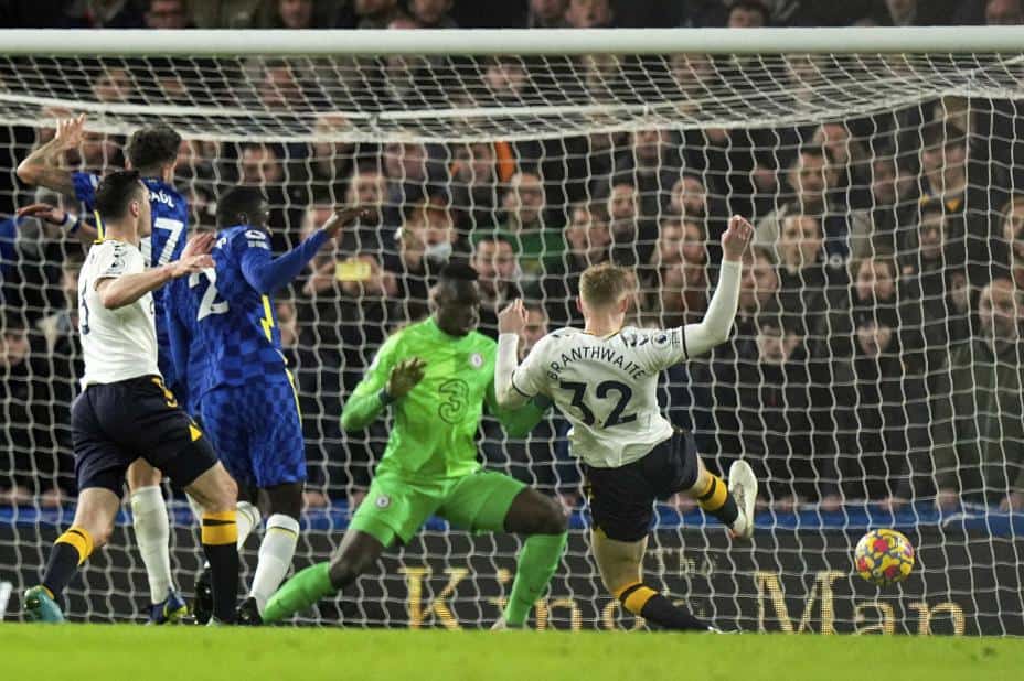 Kun fire minutter senere dukket Branthwaite opp på et frispark. 19-åringen strakte seg så lang han var, utlignet og sikret ett poeng.