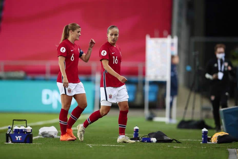 Chelseas Maren Mjelde og Guro Reiten fikk sin kamp mot Tottenham utsatt. Foto: Jil Yngland / NTB