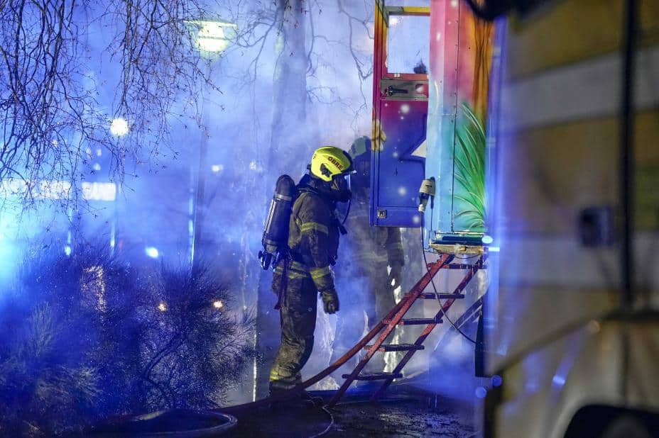 Det var en stund fare for at brannen skulle spre seg til de andre kjøretøyene og vognene tilhørende tivoliet.