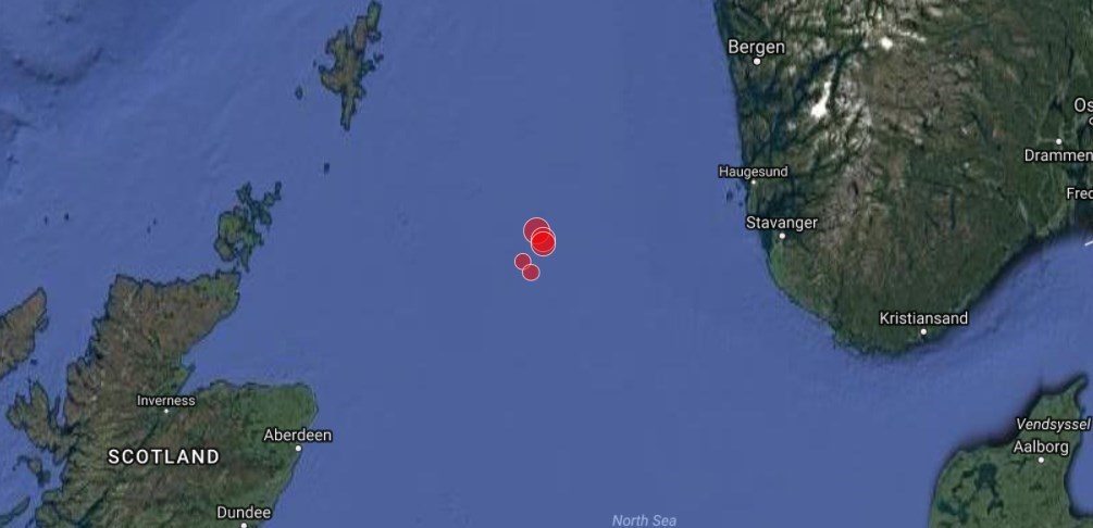 Et skjelv med styrke på 4.9 hadde episentrum på Utsirahøyden i Nordsjøen, 201.9 kilometer vest for Haugesund klokken 15.36 fredag ettermiddag. Det er ikke meldt om skader.
