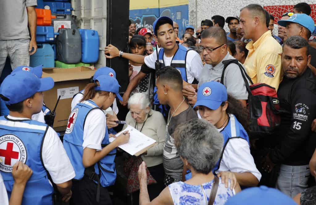 Røde Kors-arbeidere distribuerte rent drikkevann og vannrensetabletter i Caracas allerede tirsdag. Lettede personer ble intervjuet på TV.