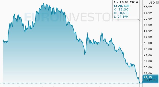 Nordsjøolje ble en kort periode omsatt for under 28 dollar fatet i Asia i natt, kort tid etter at sanksjonene mot Iran ble lettet.