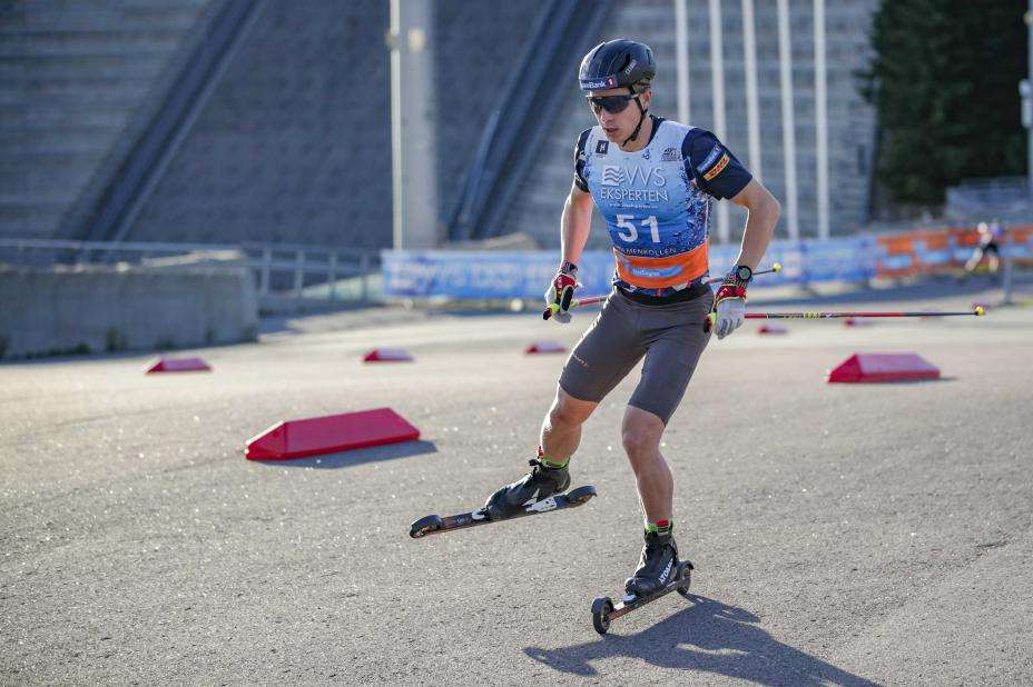 Sport: Lyn-løperen åpnet sterkt og bare økte etter hvert. Hans eminente skøyteteknikk passet godt for den tøffe traseen i Holmenkollens rulleskiløype. Han gikk også på hjemmebane etter flere treningsøkter i Holmenkollen.