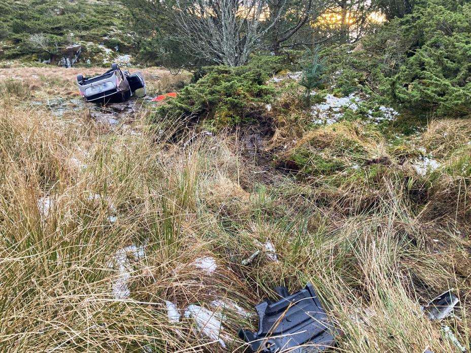 Ulykker og naturkatastrofer: Nødetatene ble varslet om ulykken klokka 13.07. Bilen havnet et godt stykke utenfor veien, og det ble lenge forsøkt med livreddende førstehjelp.