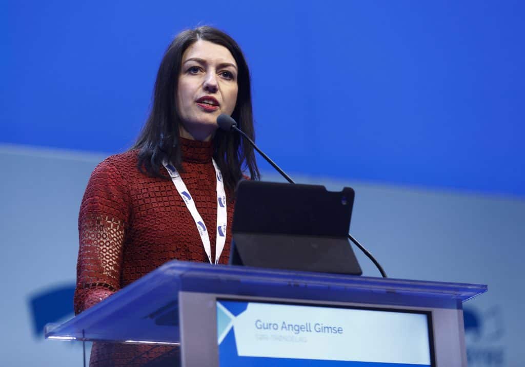 Nestleder i Høyres kvinneforum Guro Angell Gimse er storfornøyd med å ha fått partiet med seg på at familier på sikt skal ha full valgfrihet om foreldrepermisjonen. Foto: Terje Pedersen / NTB scanpix.