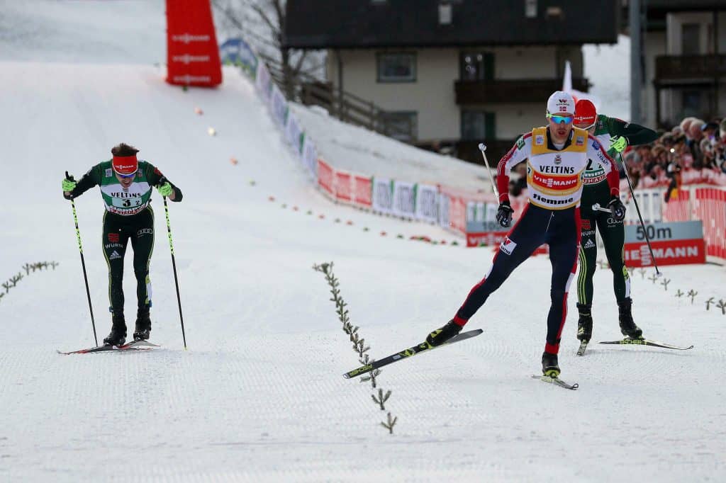 Jan Schmid og Jørgen Graabak ble hentet inn av to tyske kombinertpar, men i spurten på oppløpet knep Norge lagsprintseieren i Val di Fiemme.