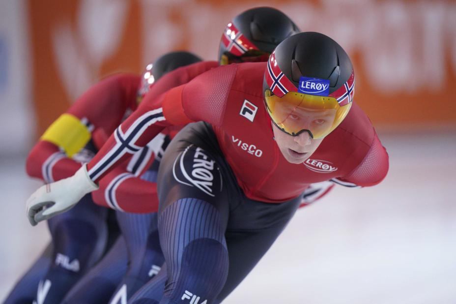 Hallgeir Engebråten, Peder Kongshaug og Sverre Lunde Pedersen tok tredjeplassen på lagtempoen under verdenscupåpningen på skøyter i Stavanger.