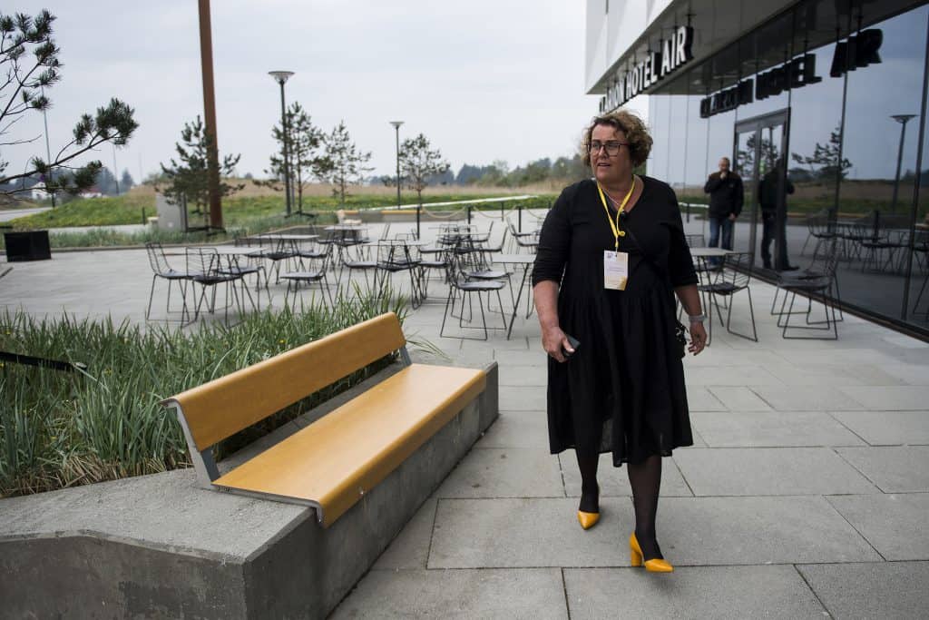 Utenfor landsmøtehotellet ble hun møtt av demonstranter fra pelsdyrnæringen da hun ankom, og hun ble også utfordret om pelsdyr fra talerstolen.
