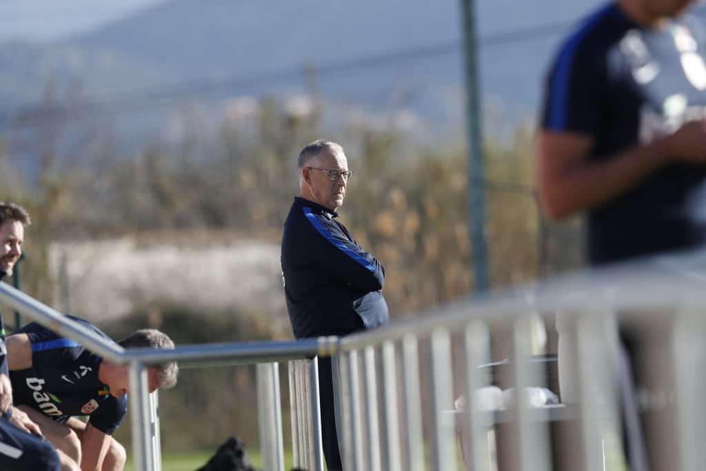På en strøken gressbane var åtte spillere i aksjon under den første treningsøkta. Lagerbäck var da godt i gang med å gi instruksjoner. I tillegg var det rundt åtte spillere som trente alternativt.