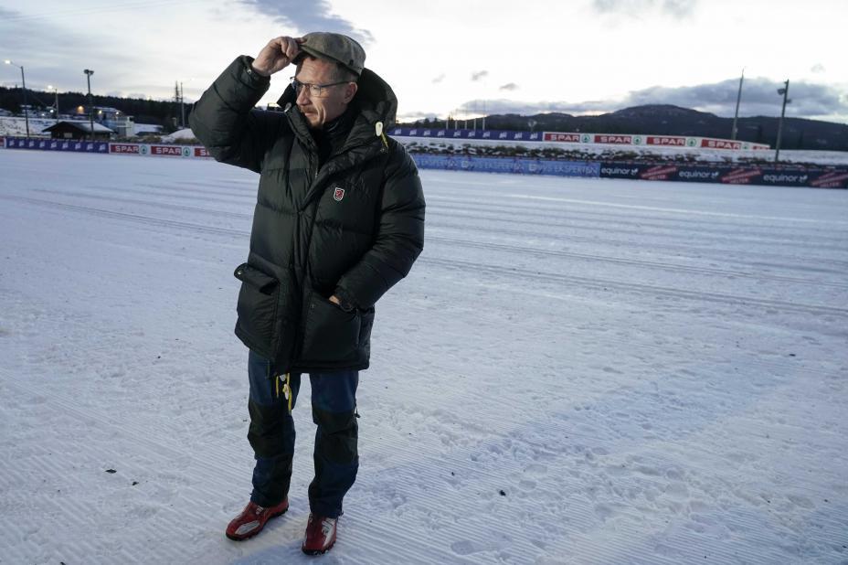 Han var på plass på skiarenaen grytidlig fredag morgen for å overvåke forholdene og utviklingen. Den svært erfarne rennlederen understreker at sikkerheten kommer først, og at det i tillegg er ventet mer vind utover dagen.