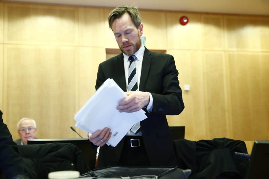 Aktor Andreas Schei under første rettsrunde mot en 60 år gammel lege som Borgarting lagmannsrett tirsdag frikjente for uaktsomt drap på sin 39 år gamle samboer i 2014. Foto: Terje Pedersen / NTB scanpix