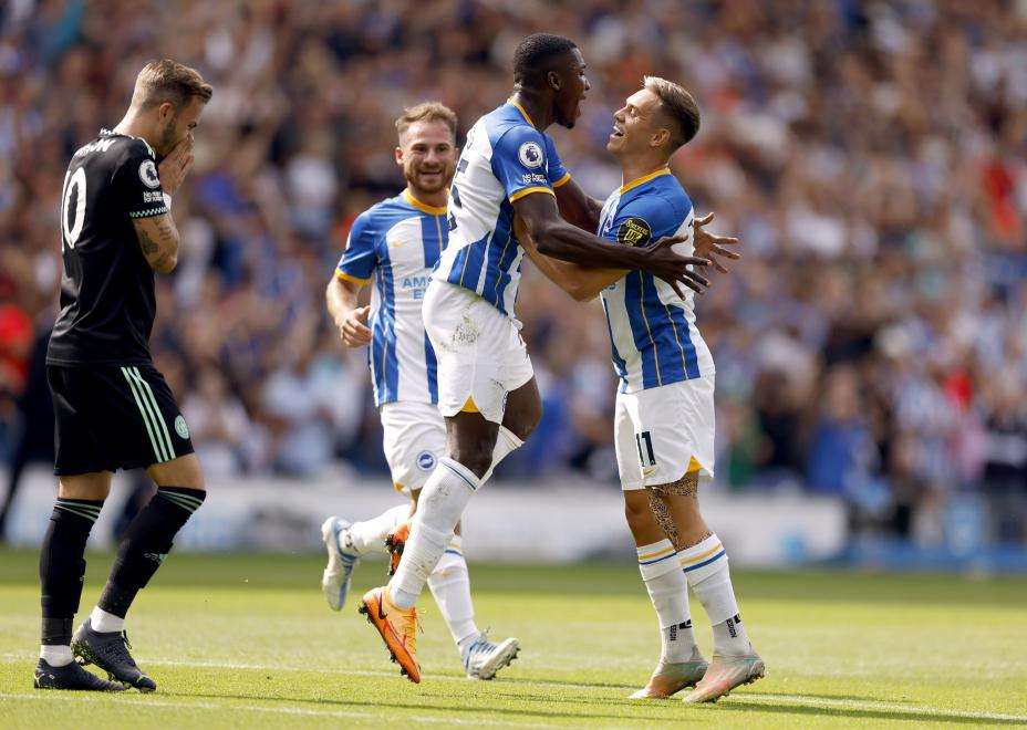 Brighton vant over Leicester i Premier League søndag. Foto: Steven Paston / AP / NTB.