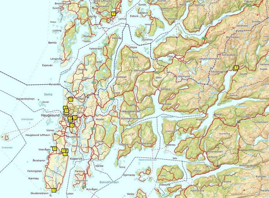 Ellers er det tynt med bomberom. Sauda har to bomberom og Leirvik har ett bomberom.